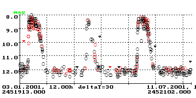 SS Cyg: Beobachtungen aus der BAV (rot) und aus dem VSNET (schwarz)